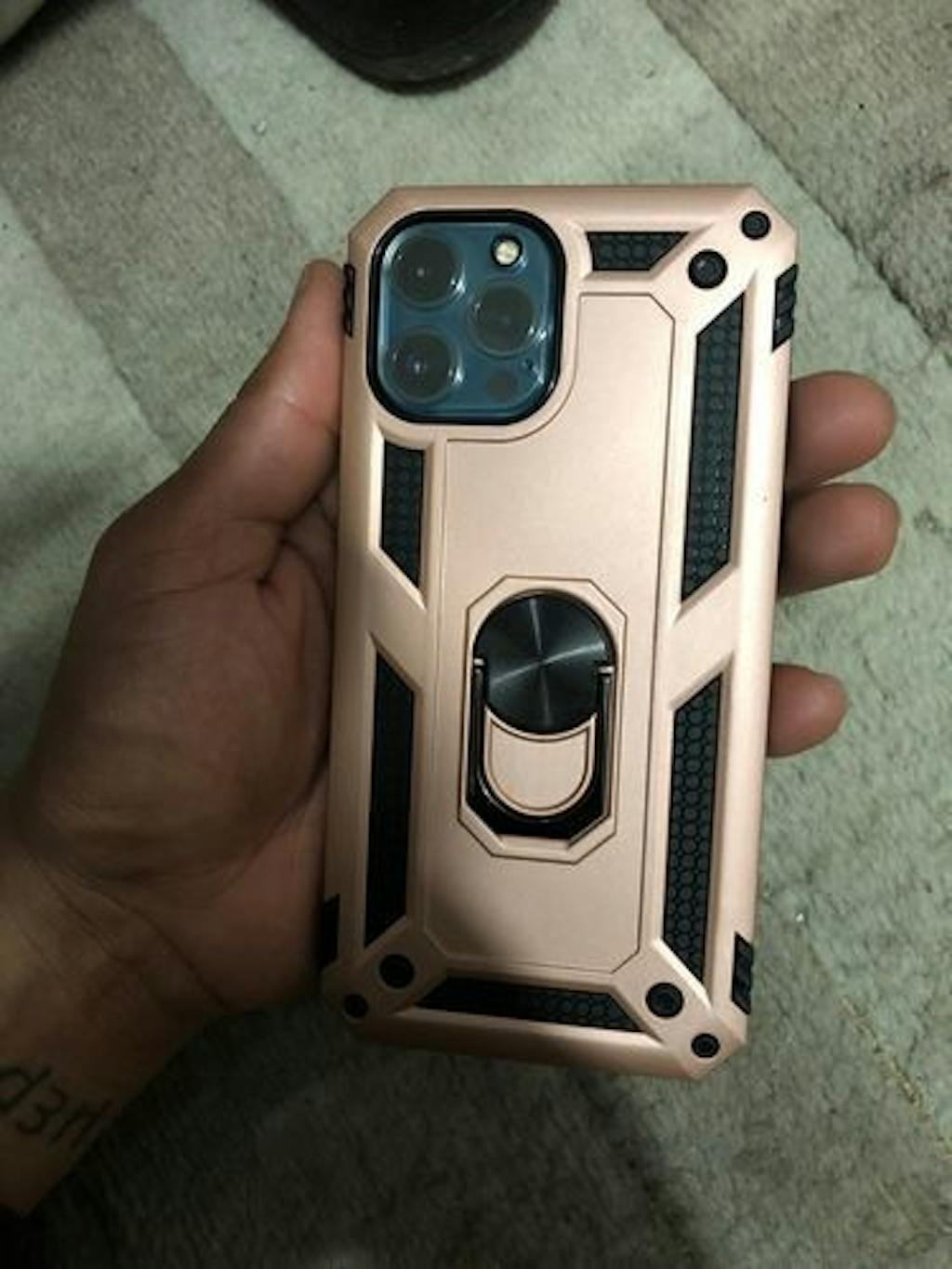 Case fits perfectly, it is easy to put on and take off and I love the blue colour. The phone is easier to hold and it feels well protected. The robotic ring works well as a stand but the square shape is a bit awkward when putting my finger through it. Overall though, I really like the case.