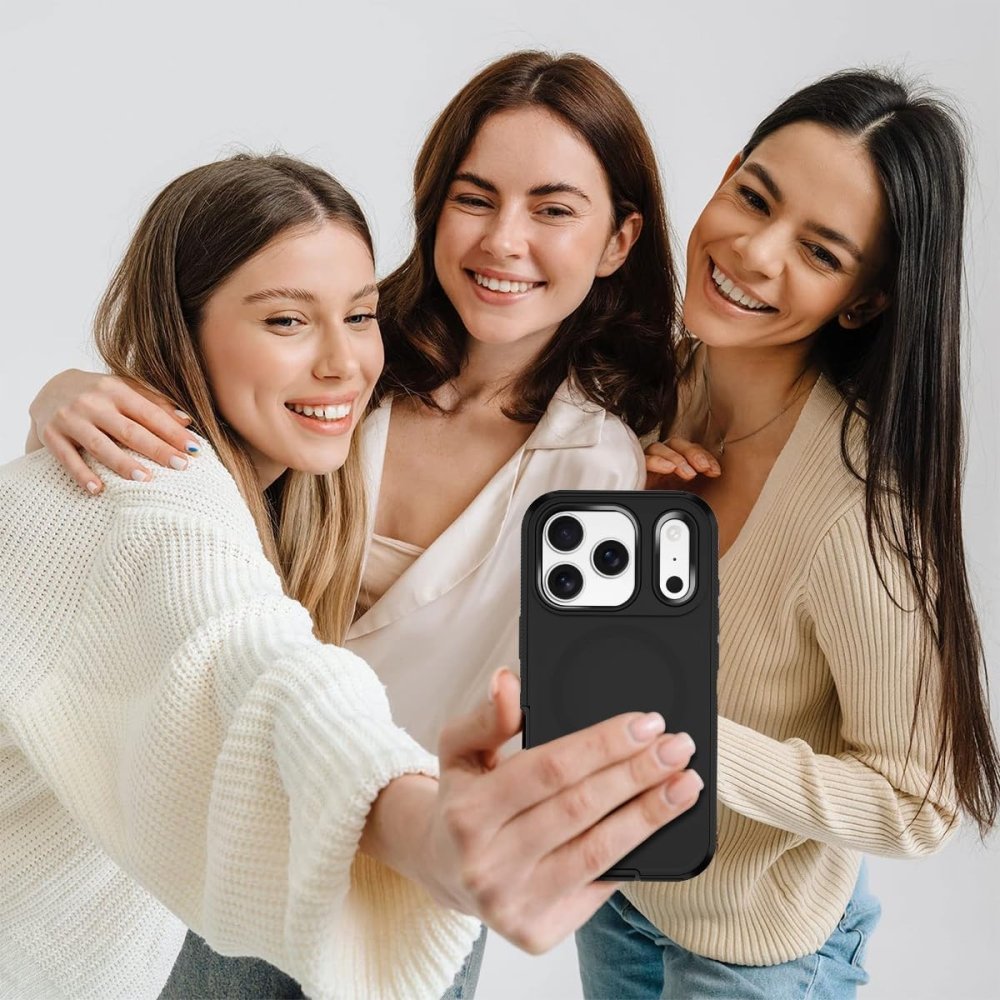The Defender Pro case for iPhone 17 Pro has a rugged 3-layer design featuring a hard shell interior and a shock-absorbing TPU outer layer. It provides reliable 20 ft drop protection and has a textured grip for a secure hold in hand. The case has full MagSafe compatibility for easy charging and accessories, providing durability, comfort, and usability for everyday or outdoor adventures.