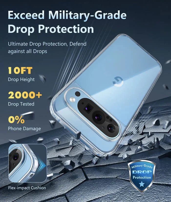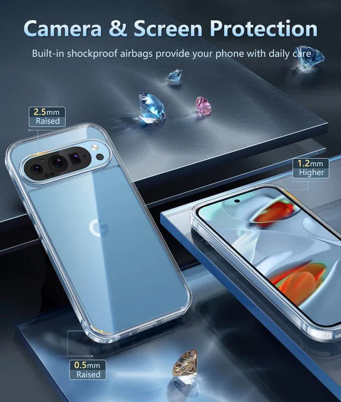 Experience your phone the way it was meant to be with our slimmest yet toughest Google Pixel 10 Pro Slim Case. The crystal-clear case lets the phone's original design shine without compromising on safety. With raised edges and a back bumper, it offers 10ft drop protection to keep your phone safe from everyday mishaps. The silver chrome buttons give you natural feedback besides adding an elegant finishing touch.